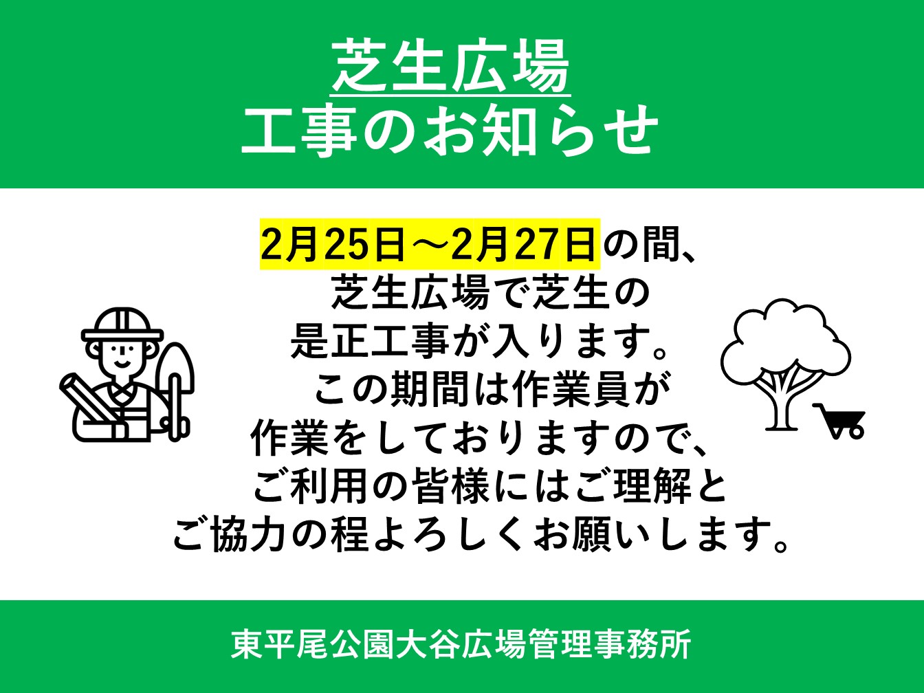 2.25㈬~2.27㈮芝生広場内是正作業